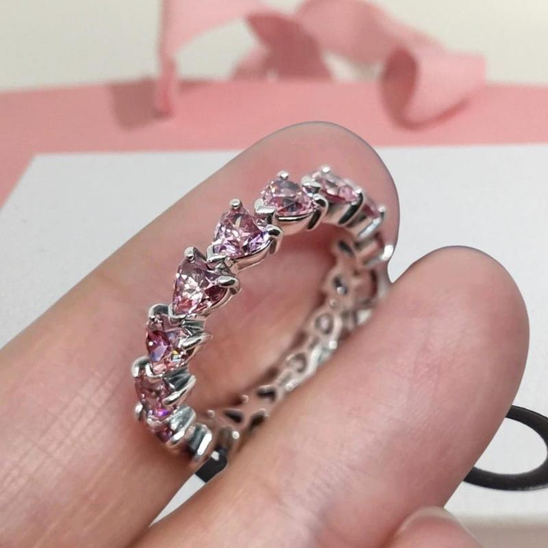 Серебряная кольца "Сияющие розовые сердечки" Новая, идет вместе с биркой Материал: серебро Проба: S 925 ALE Вставки: кристал Размеры в наличии Производитель Таиланда