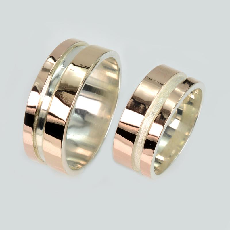 Пара обручальных широких колец Серебро 925 пробы Золото 375 пробы Средний вес 4,5 грамм Ширина 7,6 мм Обр20Обр20 Размеры от 15 до 22,5
