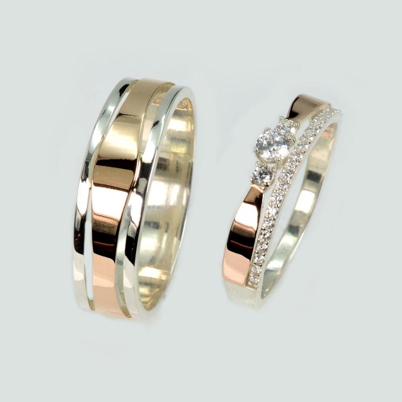 Пара обручальных колец Серебро 925 пробы Золото 375 пробы Ширина женского 4 мм, средний вес 1,76 грамм Ширина мужского 6 мм, средний вес 3,37 грамм Обр56283к
