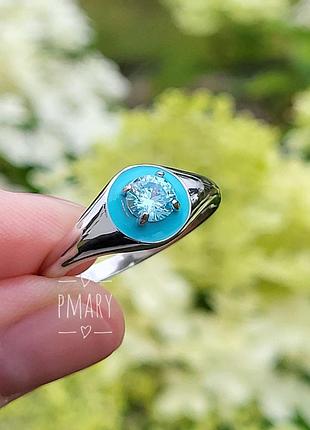 💎 серебро 925, проба 💎 покрытие родием 💎 ювелирная эмаль бирюзового цвета 💎 камень цирконий 💎 размер 18,5 💎 вес 2.4 г 💎 страна производитель Китай 💎 нова