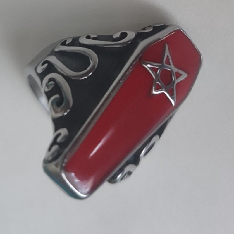 Новое кольцо печать coffin звезда размер 20 мм (10) нержавеющая сталь Нержавеющая сталь не темнеет.