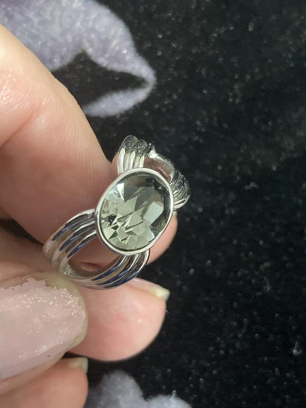 Кольцо в серебряном тоне родированное вставка ювелирное стекло дымчатый кварц