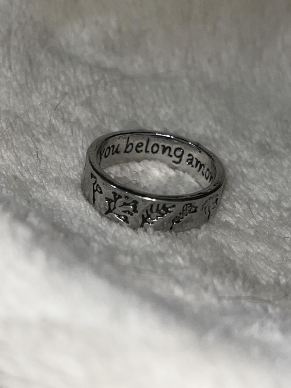 Біжутерія сріблястого кольору з малюнками квітів ззовні, з написом в середині. 17 розмір