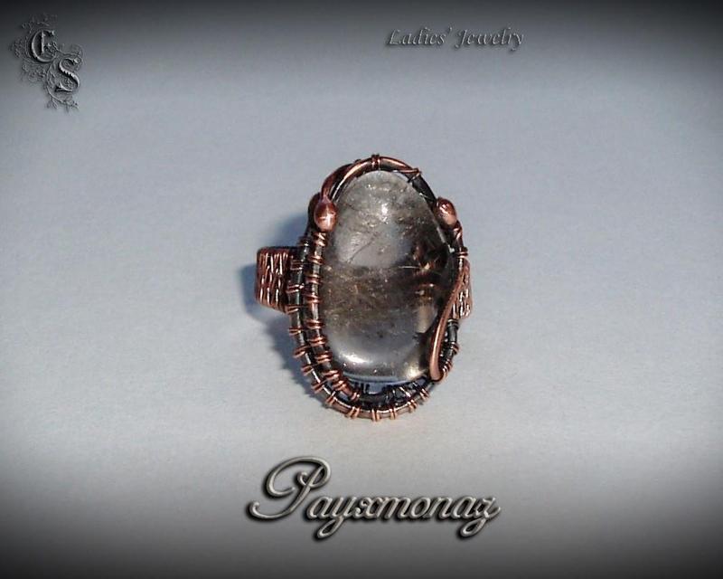 Кольцо с раухтопазом выполнено из патинированной меди в технике wirewrap. Размер 18+, регулируемый.