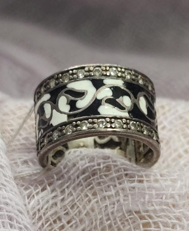 Серебряная кольца 925 проба, вес 4,6 грамма, клеймо ииножевика цирконий и эмаль