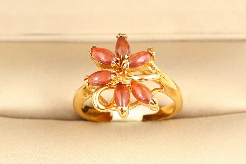 висота 1,8 см вага 4,04 гр Кільце No name шість каменів з натуральним гранатом 19 р золотисте