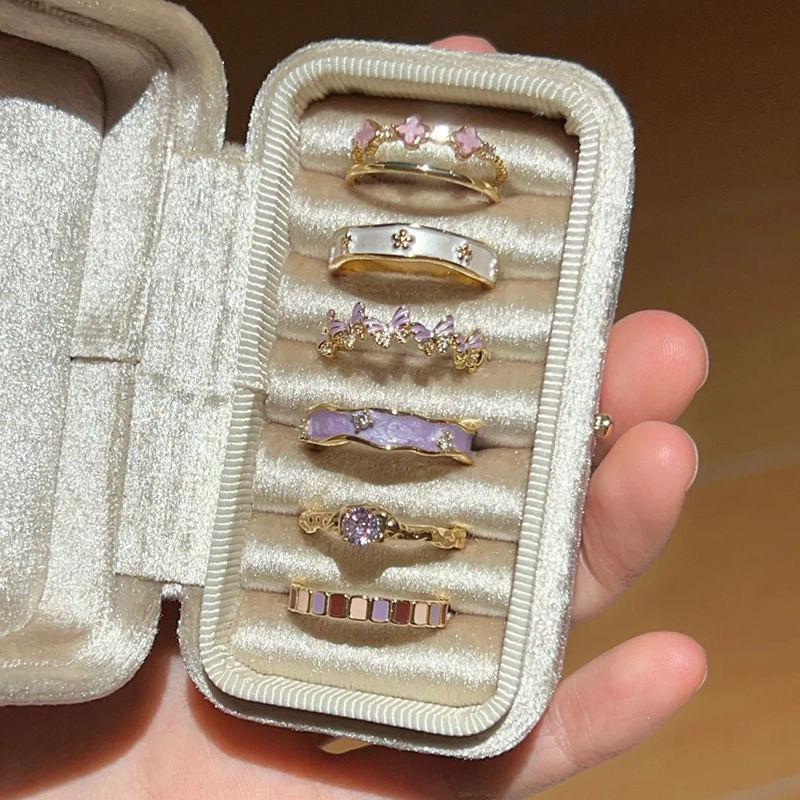 ✨ Набір кілець у ніжних тонах ✨ Ідеальне поєднання золота та ніжно-фіолетових відтінків 💜 Кожне кільце має свій унікальний дизайн — від елегантних квіткових мотивів до мінімалістичних акцентів. Вони чудово виглядають як разом у комплекті, так і окремо, доповнюючи будь-який образ 🌸 💍 У наборі: 6 кілець