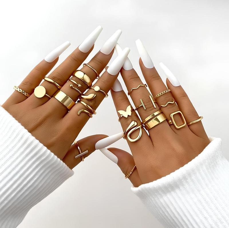 Набор круглых геометрических колец в виде бабочек и змей 20 штук, бижутерия золотого цвета