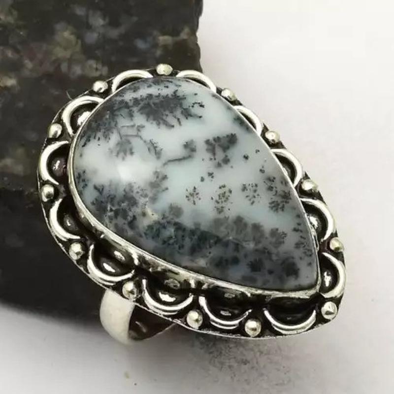 Кольцо с натуральным ДЭНДРООПАЛОМ, МОХОВЫМ ОПАЛОМ Камень - 25 * 16 мм. Размер - 19.25. Очень красивый "фарфоровый" камень с ярким моховым рисунком. Металл - сплав с серебром, сверху устойчивое покрытие серебром высокой пробы (925). Индия, ручная работа В едином экземпляре