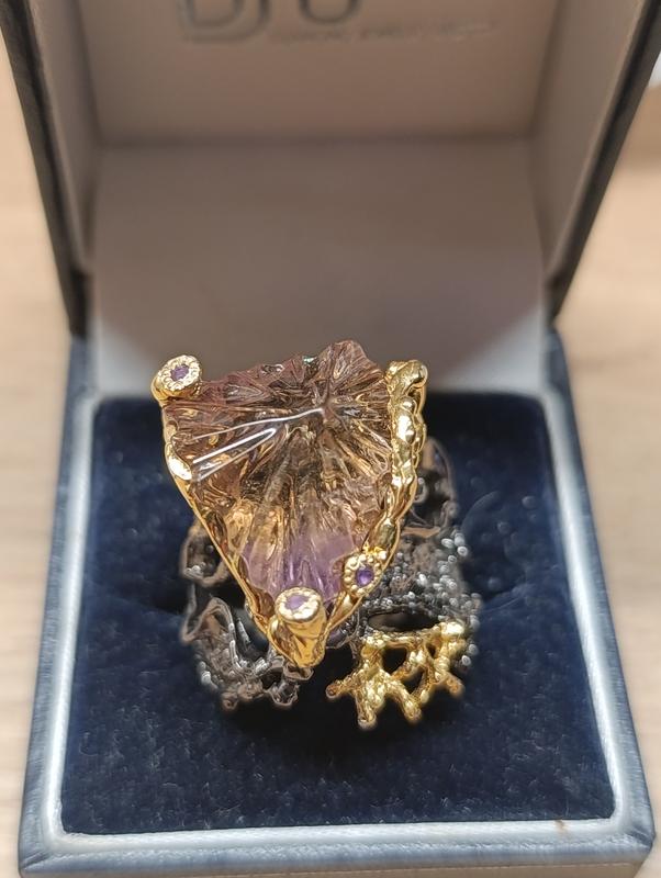 серебро покрыто черным родием и вставками желтого золота