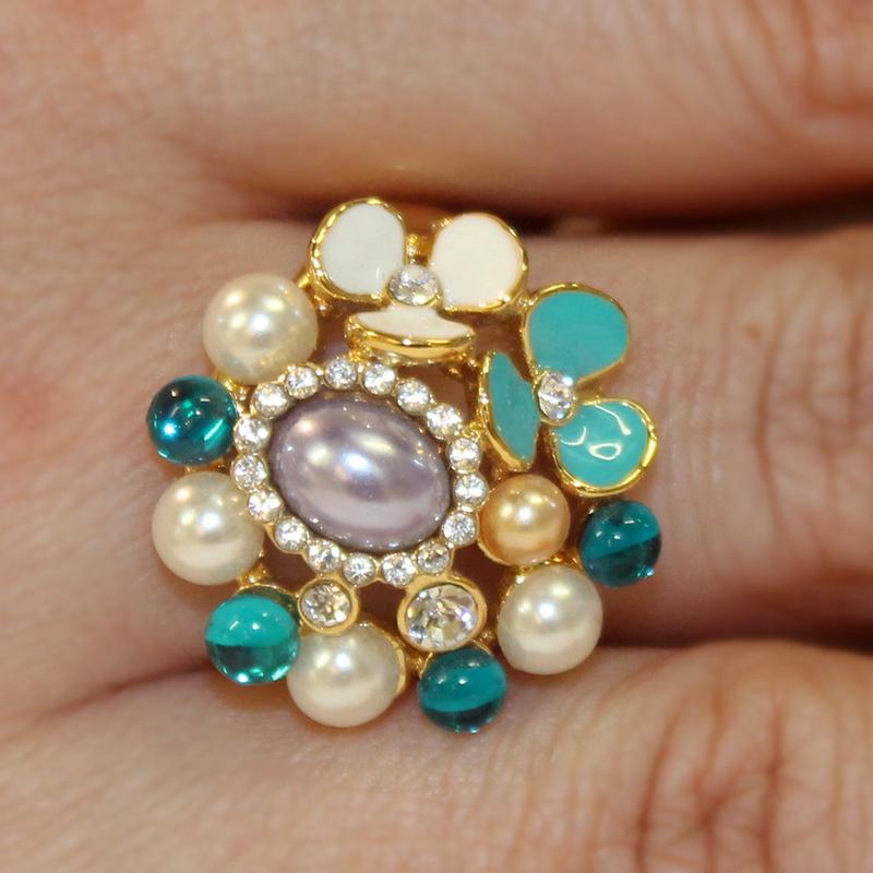Кольцо стеклярус, имитация жемчуга, цветная эмаль. Размер: 20.