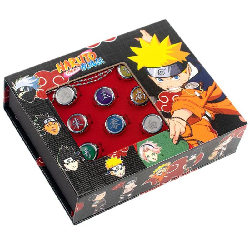 Набор колец наруто светящиеся в подарочной упаковке - косплей аниме - naruto