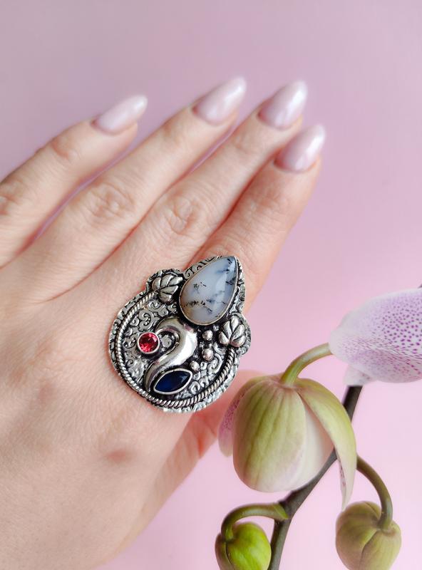 Кільце дендро-опал крапля та мультикамені. дендроопал каблучка перстень. дендроагат кільце...