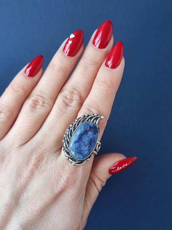Пропонуємо до Вашої уваги кільце з сапфіром. Індія. Розмір : 19 Розмір каменя: 23*14,5 мм. Розмір кільця(металева частина+камінь): 34*20 мм. Метал : Індійське срібло, вкрите сріблом 925 пр*. (сплав срібла,міді та латуні,покрите сріблом 925 пр.) Вироби з сапфіром володіють потужною енергетикою і служать найсильнішими оберегами. Не дарма в давнину цей камінь вибирали монарші особи і жерці.Цей мінерал - символ мудрості, духовності, справедливості. Вважається, що камінь допомагає приборкати пристрасті і змушує приймати рішення розумом, а не керуючись емоціями.