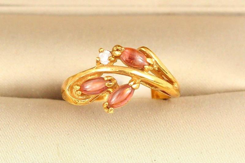 Кольцо no name три риса с натуральным гранатом 19 р золотистое