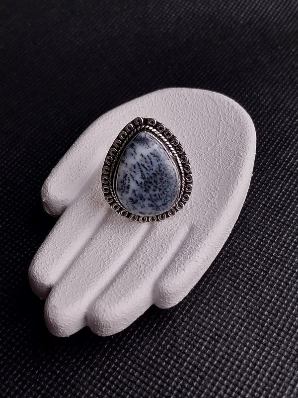 Дендро-опал кольцо дендритовый опал размер 16.5 кольцо с дендро-опалом в серебре индия!