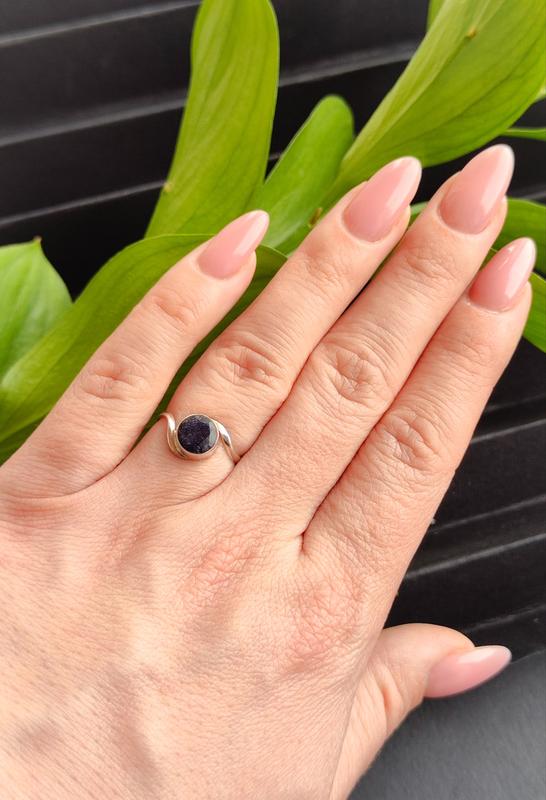 Кільце сапфір. перстень з сапфіру коло. каблучка мініатюрна з індійського сапфіру. розмір...