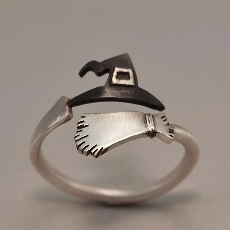 Каблучка зі зміною розміру у вигляді відьміного капелюха та мітли