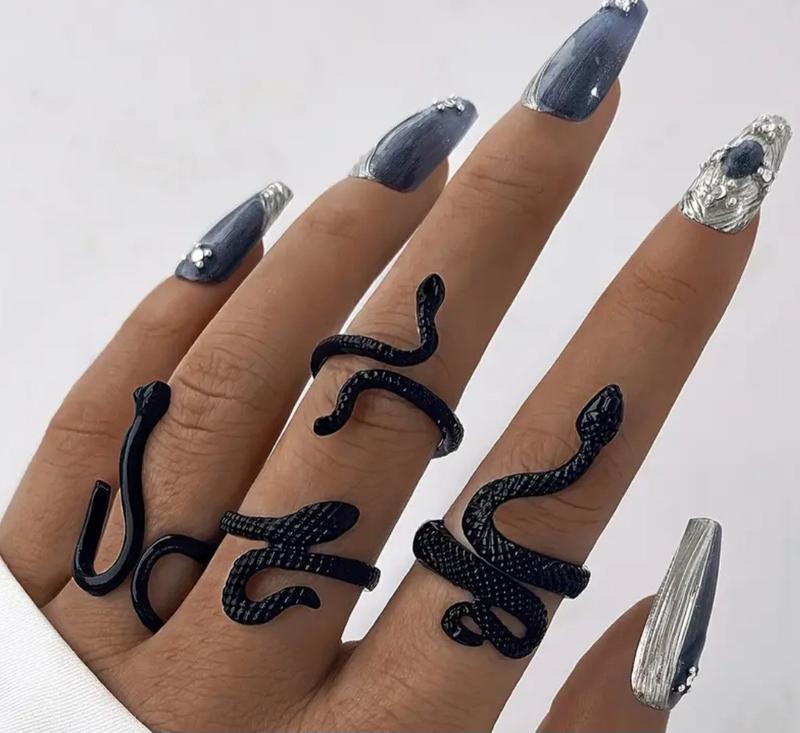 Кольца в форме змей. Цвет: черный. Размер: one size. Материал: сплав.