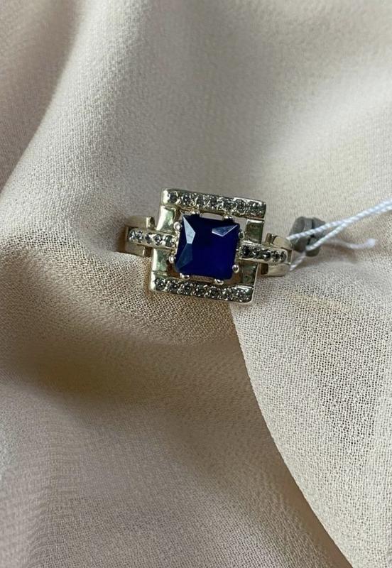 Срібний перстень 925 проби із вставками синього цирконію та маленьких білих цирконів, вага виробу 3,16 грам, розмір 17,5