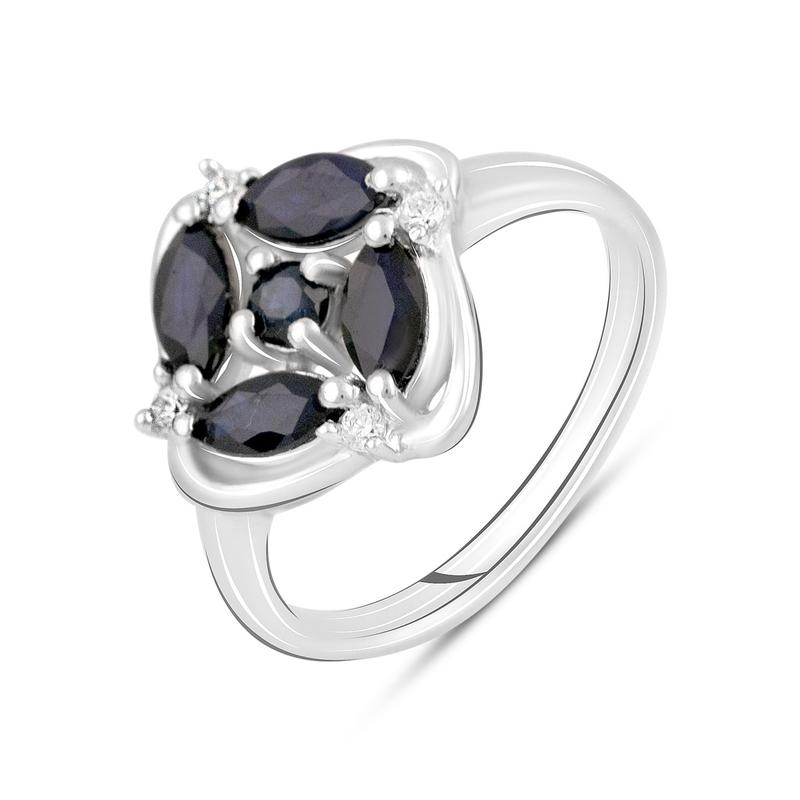 Серебряное кольцо ortex с натуральным сапфиром 1.31ct, фианитами, вес изделия 3,5 гр (2120...