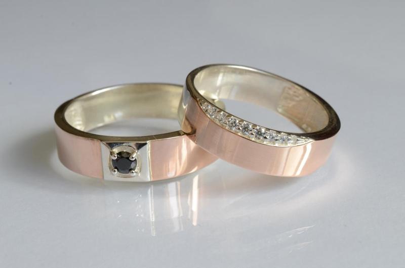 Пара обручальных колец из серебра с золотыми вставками