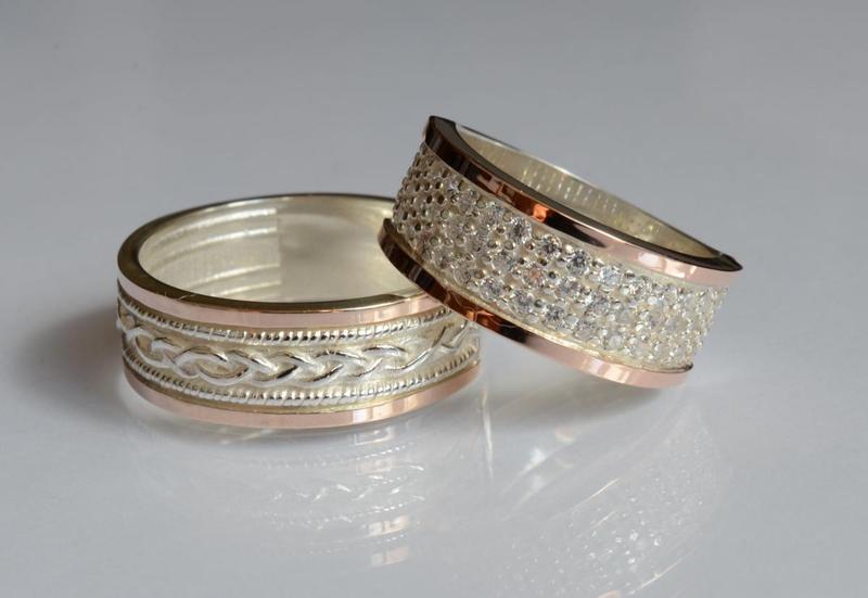 Характеристики: - Производство: Украина - Вид изделия: пара обручальных колец - Вес женского кольца: 4.5 г - Ширина женского кольца: 8.5 мм - Вес мужского кольца: 6.4 г - Ширина мужского кольца: 7 мм - Материал: серебро 925 проба, золото 375 проба - Размер женского кольца: 15-22 - Размер мужского кольца: 17-23