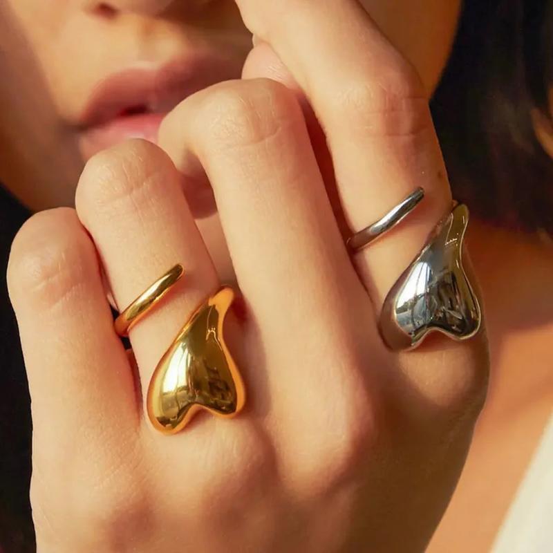Стильні та елегантні каблучки з нержавіючої сталі з візерунком серце. У кольорі золото і срібло. Виріб відправляється в подарунковому упакуванні.