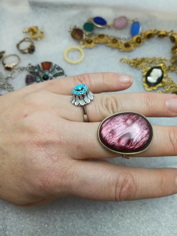 Кольцо кольцо тяжёлый кабон в виде лапидолита камня?, измельчения, винтаж, маркировки