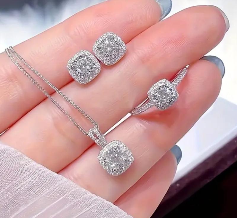 Красивый наборчик в серебряном цвете. Камешки блестят аж глаза слипает)) Серьги гвоздики Каблеск размер 16/17 и можно увеличить до 18 размера. Цепочка с подвеской Сплав с покрытием.