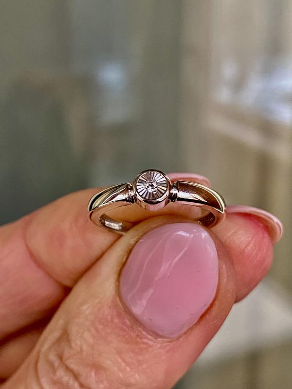 Нова красива срiбна каблучка з природнiм дiамантом. Срiбло 925 проби вкрите родієм 999 проби. Дiамант в каблучці загадково мерехтить та виблискує., фото, на жаль, всієї краси не передає. Каблучка виглядає дорого та багато. Розмір каблучки 16 (за домовленістю розмір каблучки можу змінити у свого ювеліра). Каблучку можна брати й на подарунок. За необхідності можу зробити Вам додаткові фото та з радістю відповім на всi Ваші запитання)