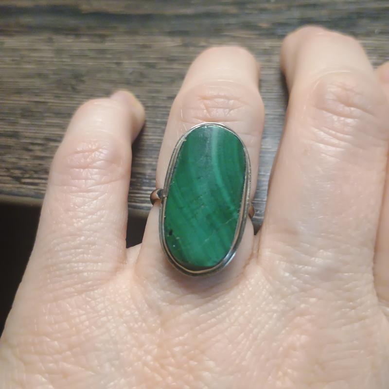 Кольцо с малахитом — это мощный оберег, приносящий эмоциональное равновесие, творческое вдохновение и защиту от негатива, а также способствующий укреплению здоровья кожи и суставов. Зеленый камень помогает успокоить нервы, снять стресс, уменьшить астматические приступы и улучшить зрение, что делает его полезным как талисман, улучшающий общее самочувствие. Есть нюанс на последнем фото видно.Обрамление сплав.