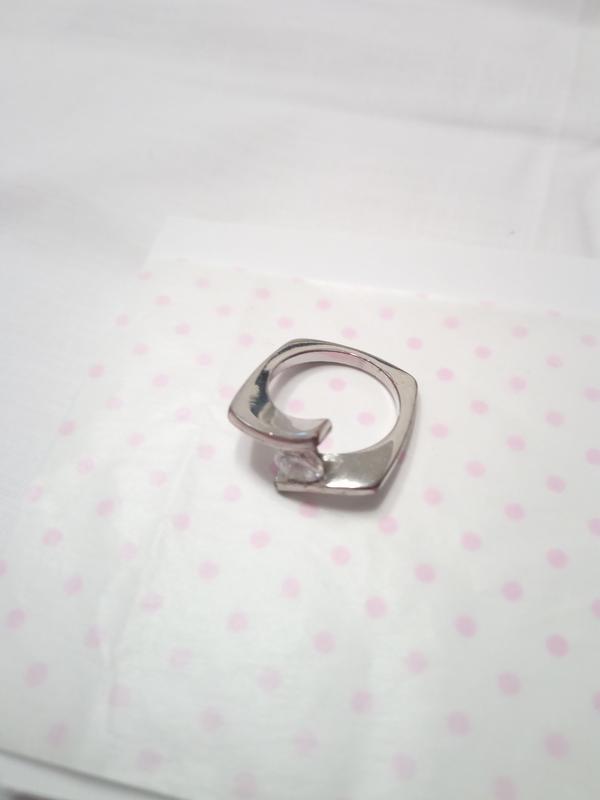 Кільце з ювелірного сплаву під срібло. Оригінального дизайну, не залишиться не поміченим. Трохи затерлось з внутрішнього боку, після кількох років , видно на останньому фото. Прослужить ще довго. Згодиться для фотосесій