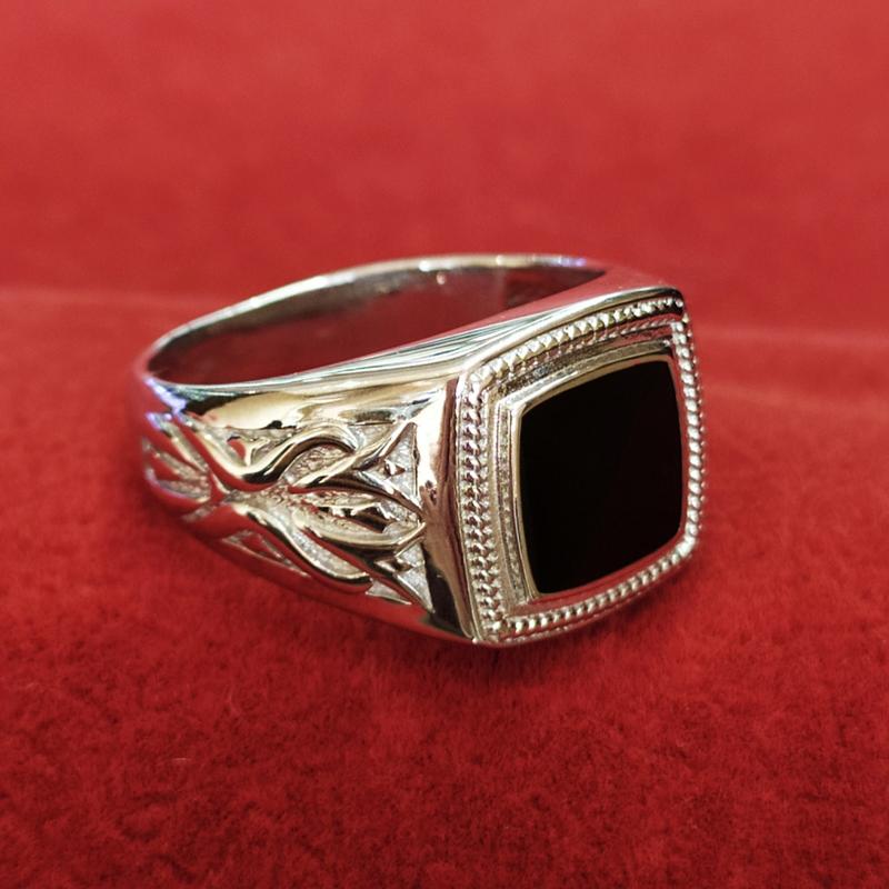 Печать мужская из серебра 925 пробы, с вставкой из оникса черного цвета, с резным узором с обеих сторон, размер 20,5, вес 8,53г. Современная классика актуальная всегда.