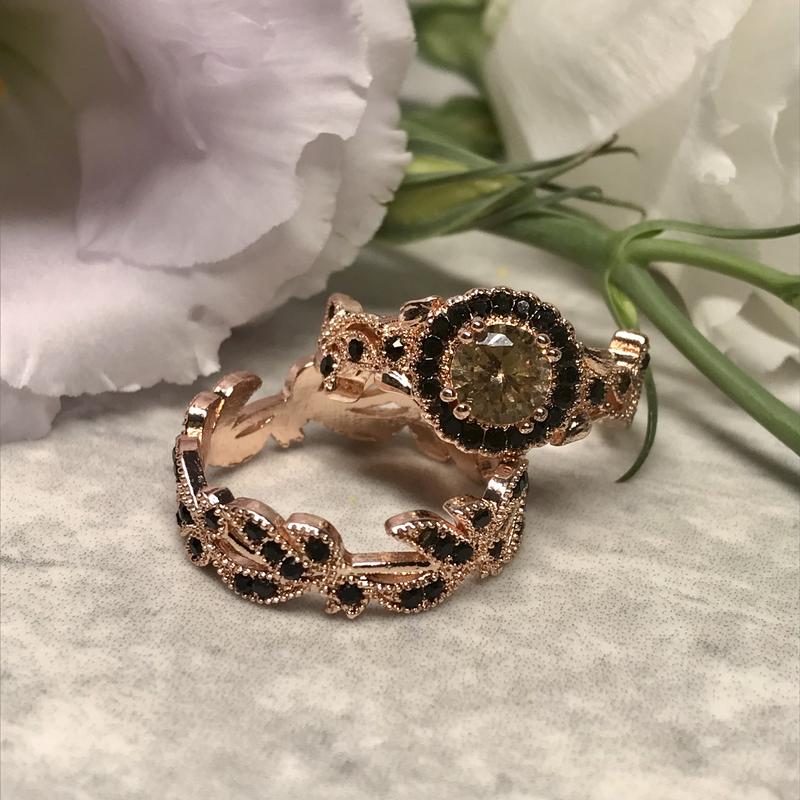 Кільце 2 в 1. Імітація рожевого золота з чорними дорогоцінними камеями