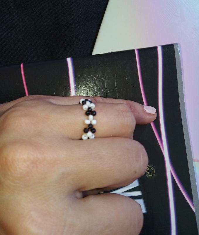 Кольцо из бисера "шах&мат" детское, подростковое, бижутерия, украшения, ручная работа,хэнд...