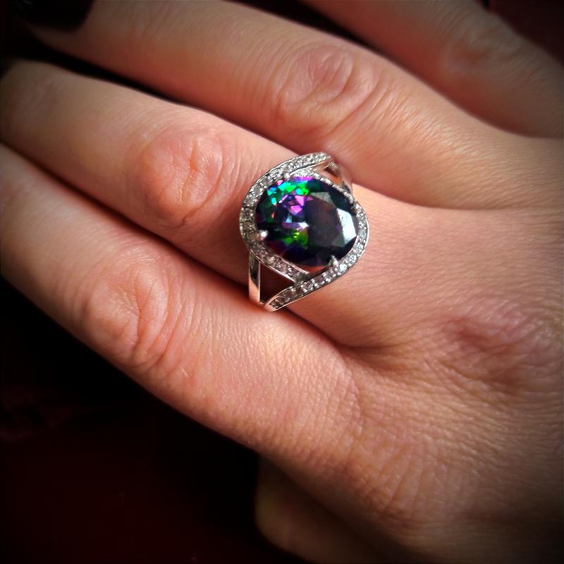 Женское серебряное кольцо 925 пробы, 18 размера, камень-мистик топаз в обрамлении фианитов.