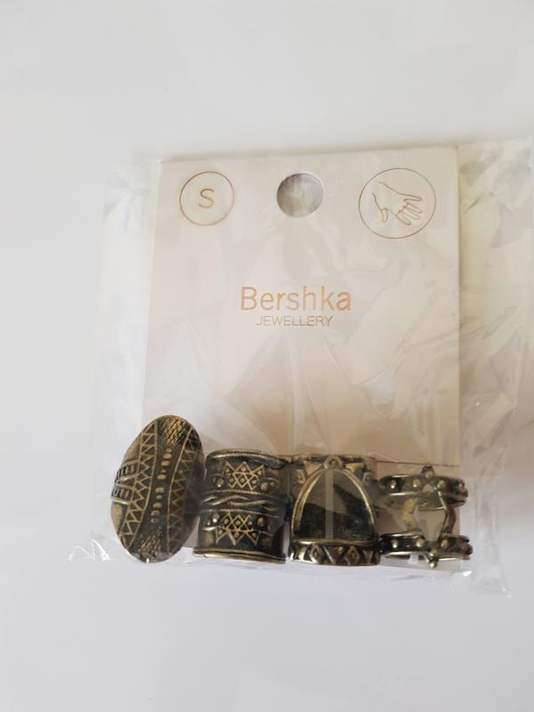 Набір масивних колечок від Bershka. Нові, в упаковці, 4шт. Розмір вказаний S, це десь 16.5-17.5 розмір. Виглядають дуже стильно! Дивіться інші мої оголошення!
