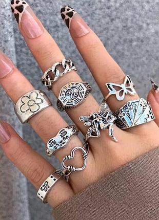Набор колец 9 шт в стиле панк рок хип-хоп гот кольца винтаж