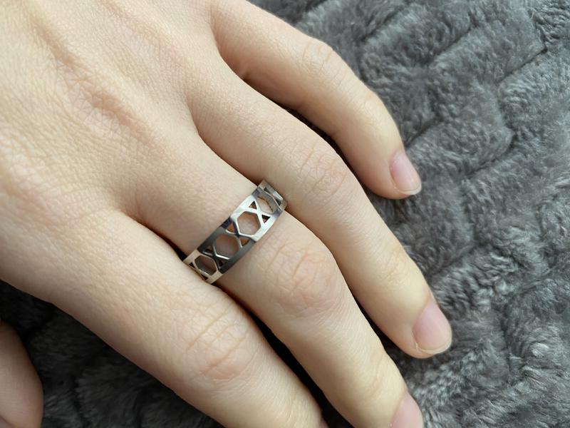 Каблучка "Х" Ширина 5,5мм. Розмір - 17. Матеріал: нержавіюча сталь - не окислюється; - не викликає алергію; - не фарбує шкіру.