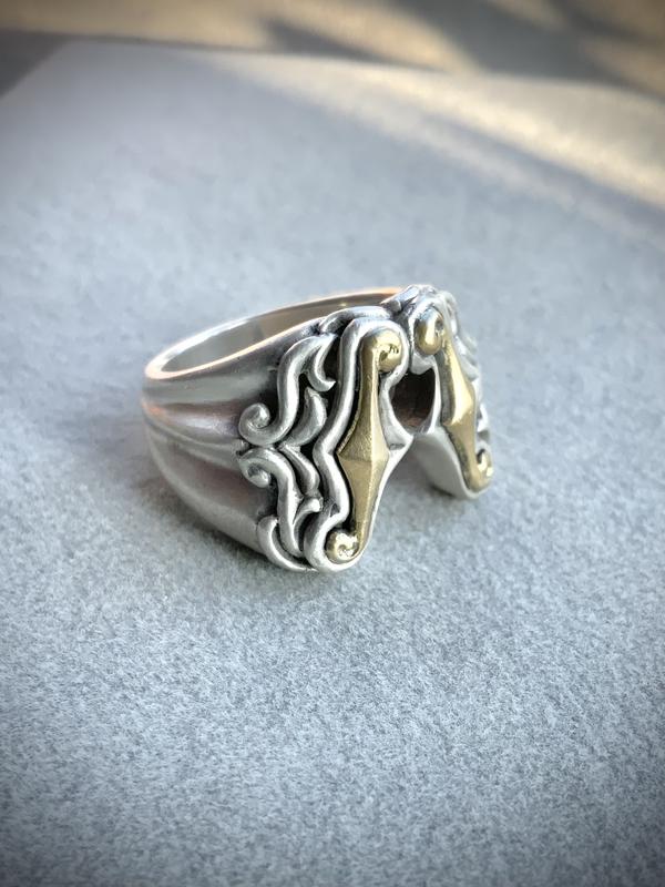 Перстень кольцо авторская работа Япония 💫 Серебро с золотом 18 карат, клеймо ✔️ Вес изделия 22,4 грамма Размер 18,5 (с возможностью увеличить)✔️ Все детали на фото🙌🏻 Изделие матировано👆🏻 Без нюансов ✔️ 👆🏻отправка только НОВОЙ ПОЧТОЙ после 100% ОПЛАТЫ НА КАРТУ👆🏻 🙋🏼♀️смотрите по фильтру аксессуары для мужчин