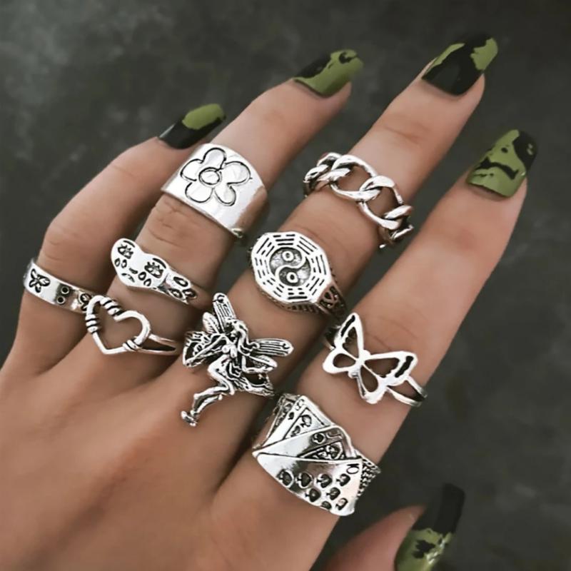 Набор колец 9 шт в стиле панк рок хип-хоп гот крутые кольца