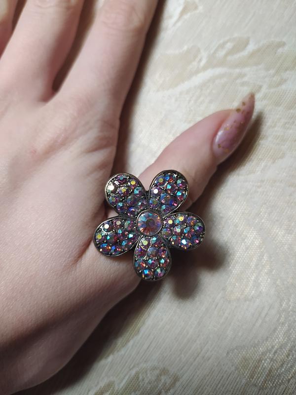 Кольцо пластик низ, верх металл, кристаллы с покрытием АБ. р. 18 нюансы на последнем фото вмятинки).