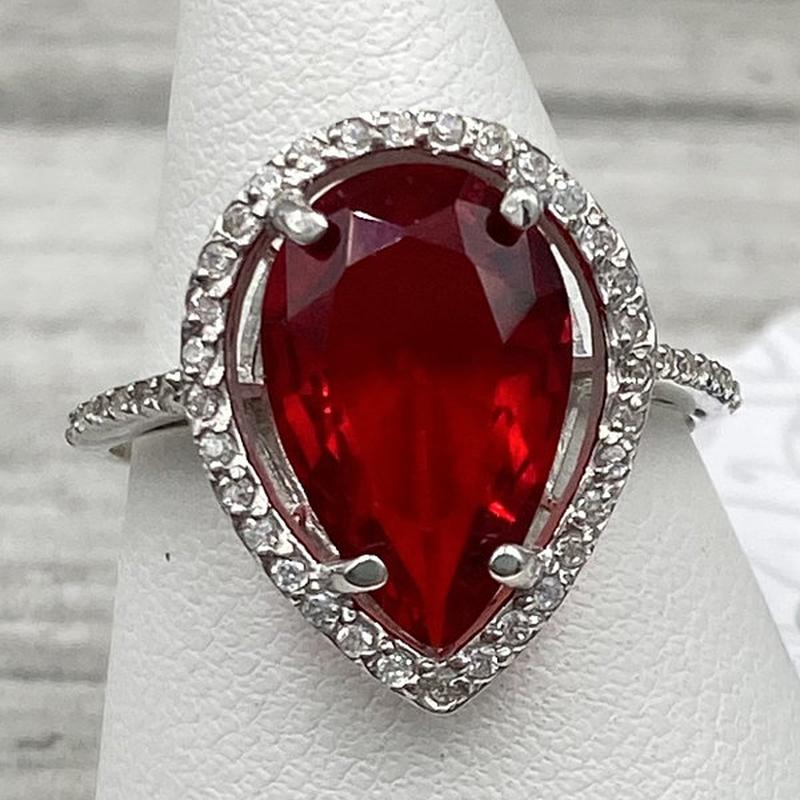 Кольцо серебряное женское Катюша вставка красные фианиты размер 18,18,5;19.