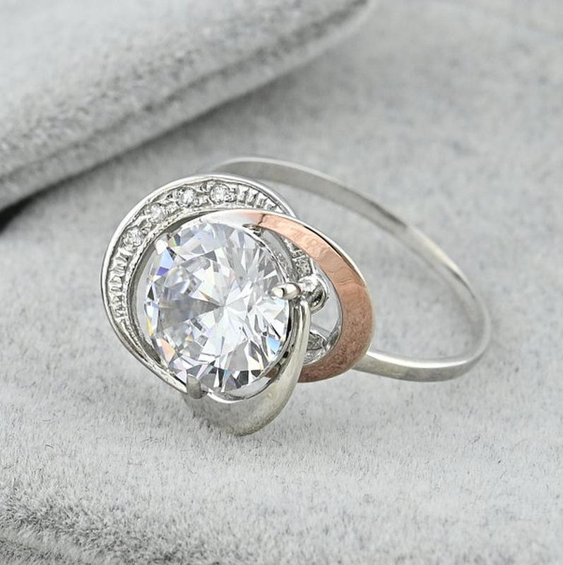 Кільце срібне з золотом вставка білі фіаніти розмір 19.5.