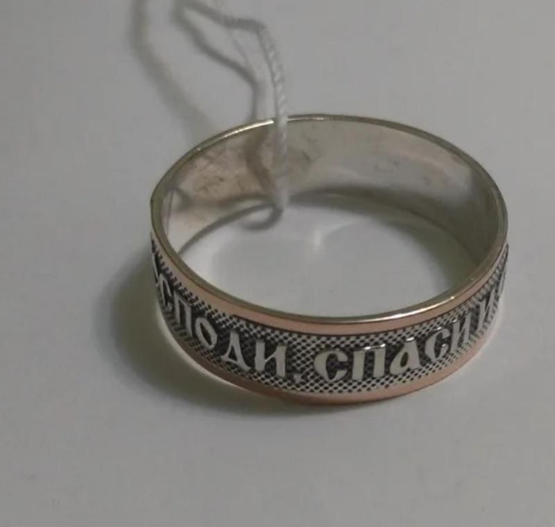 Серебряное кольцо прощение Спаси и Сохрани изготовлено из серебра 925 пробы и золотых накладок 375 пробы. Золото 375 пробы не вытирается. Средний вес колечка 3.50 грамма. Ширина 6 мм. Серебряное кольцо с золотом имеет пробу Государственной пробирной палаты Украины, клеймо и бирку производителя. Серебряное кольцо Спаси и Сохрани – это кольцо-оберег. Размеры в наличии: уточнюйте