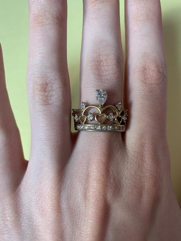 Стильное, привлекабщее внимание кольцо корона со стразами Задняя сторона немного потертаю. В остальном - никаких дефектов Размер 17