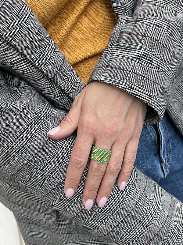 Кольцо в украинском стиле. Выполнено из высококачественного японского бисера Miyuki delica. Колечко выполняется по Вашим индивидуальным замерам. Отправка на следующий день после заказа.