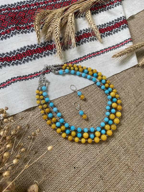 Кольори, що такі дорогі серцю❤ Сила аквамарину та енергія медового агату + гематит, відомий своїми цілющими властивостями. Сережки на посріблених швензах.довжина верхньої разки 43 см, нижньої 52 см. Можна додати розширювальний ланцюжок.
