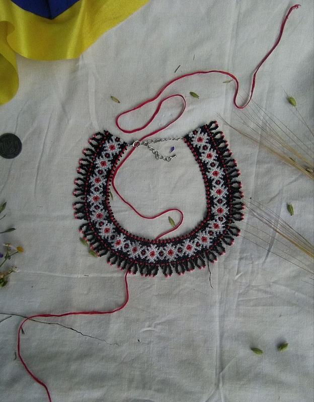 Силянка «Вишита». Ширина –3,5 см довжина - 31см + застібка 8 см. Доступна в двох кольорах(чорний та рожевий). Можна виготовити в іншому кольорі та розмірі. Матеріали – чеський бісер «Preciosa».